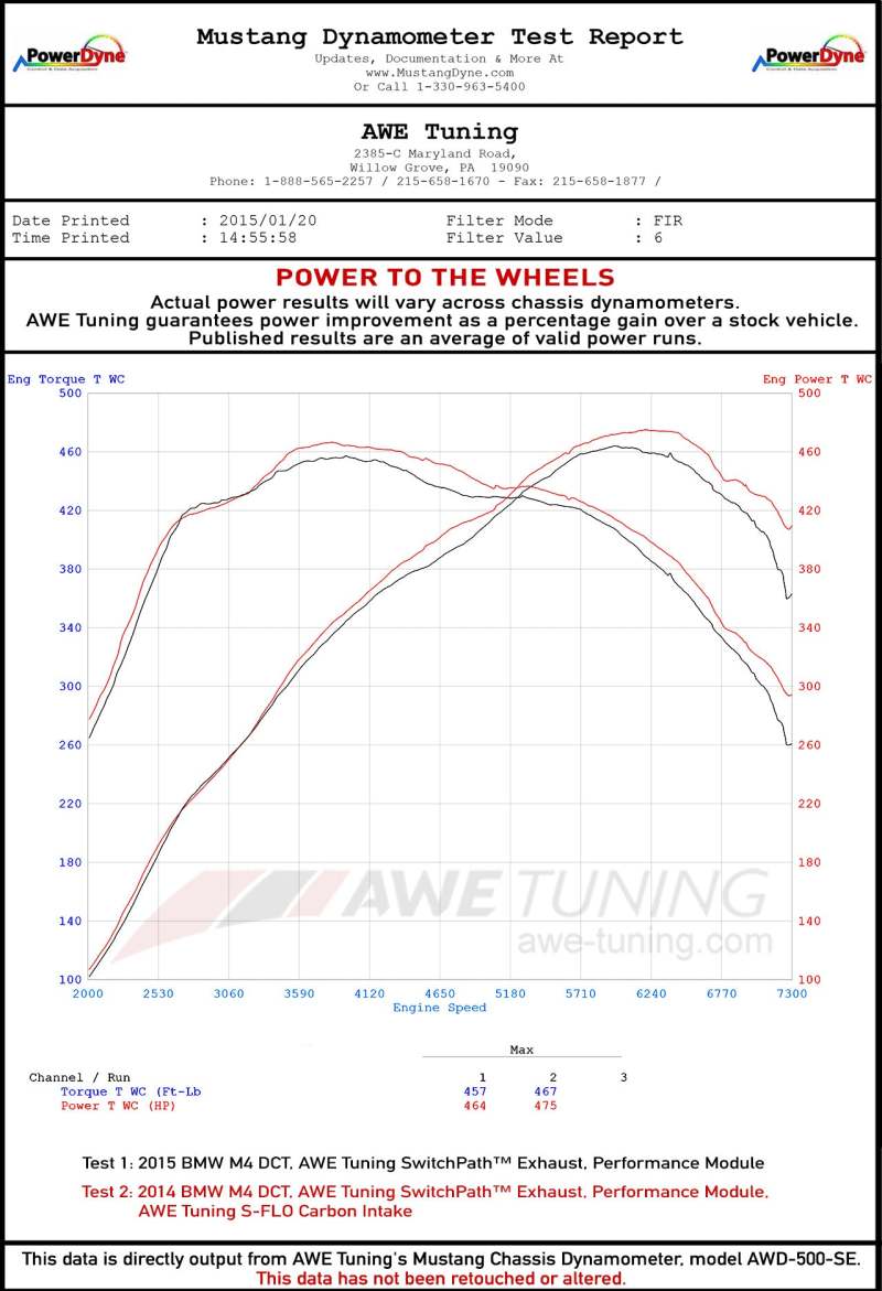 Presenting the AWE BMW F8X M3/M4 S-FLO Carbon Intake: The Carbon Fiber Air Boxes: The AWE BMW F8X M3/M4 S-FLO Carbon Intake is comprised of two fully enclosed carbon fiber air boxes that mount securely in the stock locations, engineered to match up perfectly with the factory air inlet pipes. Together with the AWE S-FLO Filters, the intake unlocks peak gains of 12 hp and 10 lb-ft of torque at the crank. Each carbon fiber airbox is crafted from high grade 2x2 weave carbon fiber with UV-stabilized resin and clear coat, which means no heat-yellowing. The S-FLO Filter: The AWE BMW F8X M3/M4 S-FLO Carbon Intake includes two S-FLO Filters specifically designed for the F8X M3/M4. These filters produce a more aggressive intake note, releasing a distinctive turbo spool sound. The included AWE S-FLO Filters use a proprietary design that is both durable and washable. Power, sophistication, and looks, alongside trademark AWE CEL-free operation and AWE's class-leading fitment guarantee. Breathe easy, F8X. Please note, AWE S-FLO Intakes are for racing use only.